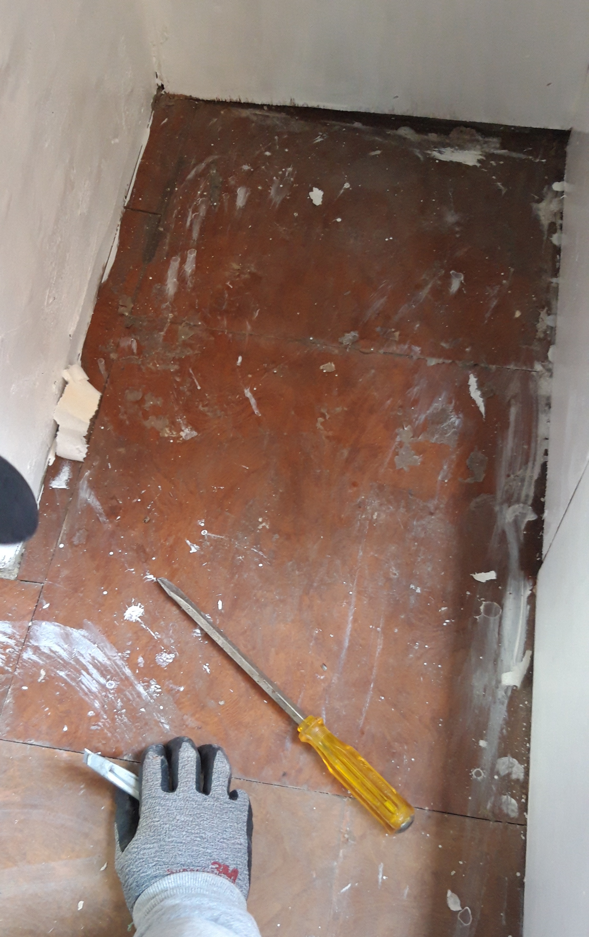 빠루로 띁고 넓적한 드라이버로 밑을 턱턱 치면서 떼어냈어요