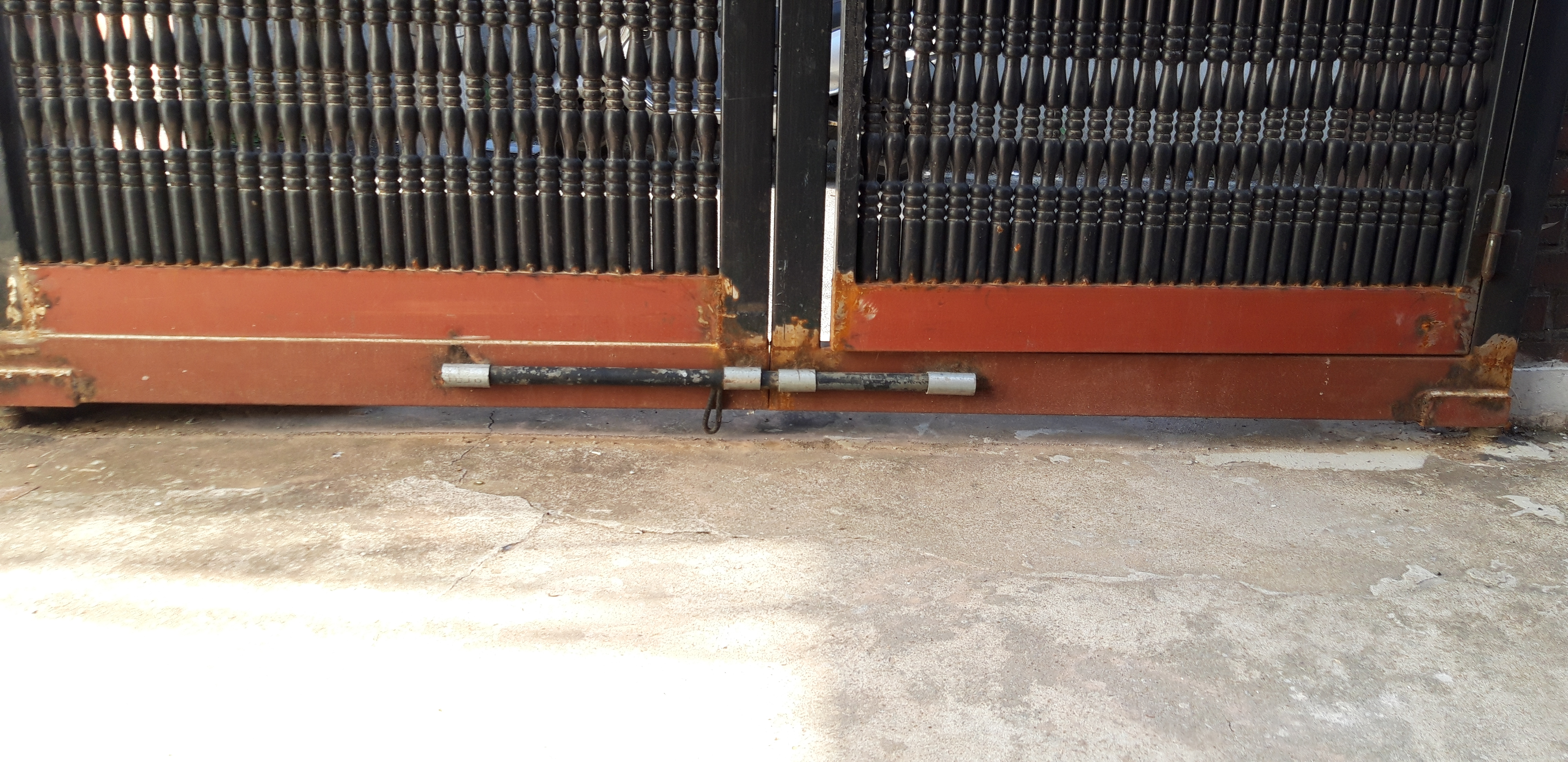 집으로 들어오는 큰 대문의 무척 낡은 철문