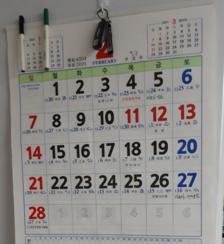 며칠후에 뚝 떨어져 바닥에 있는 달력!!